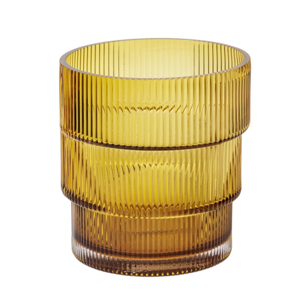 VASO DE VIDRO CINZA C/BASE E BORDAS ESTREITAS ESTRIADO...+Veja mais detalhes
