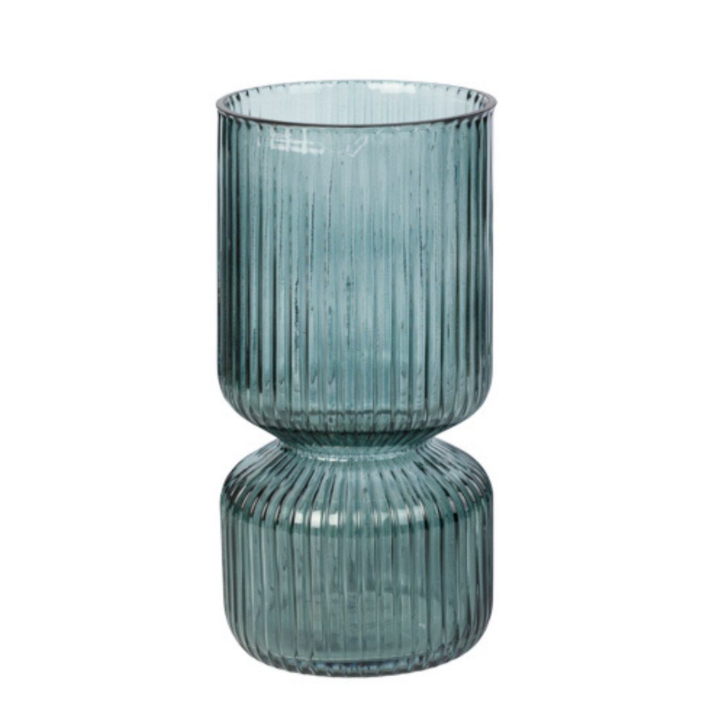 Ref: K26A01-600-1008 0Vaso de vidro com sua parte superior no formato Longilineo e a base no formato quadrado na cor Verde, intitulado *Big Ball Pols*.