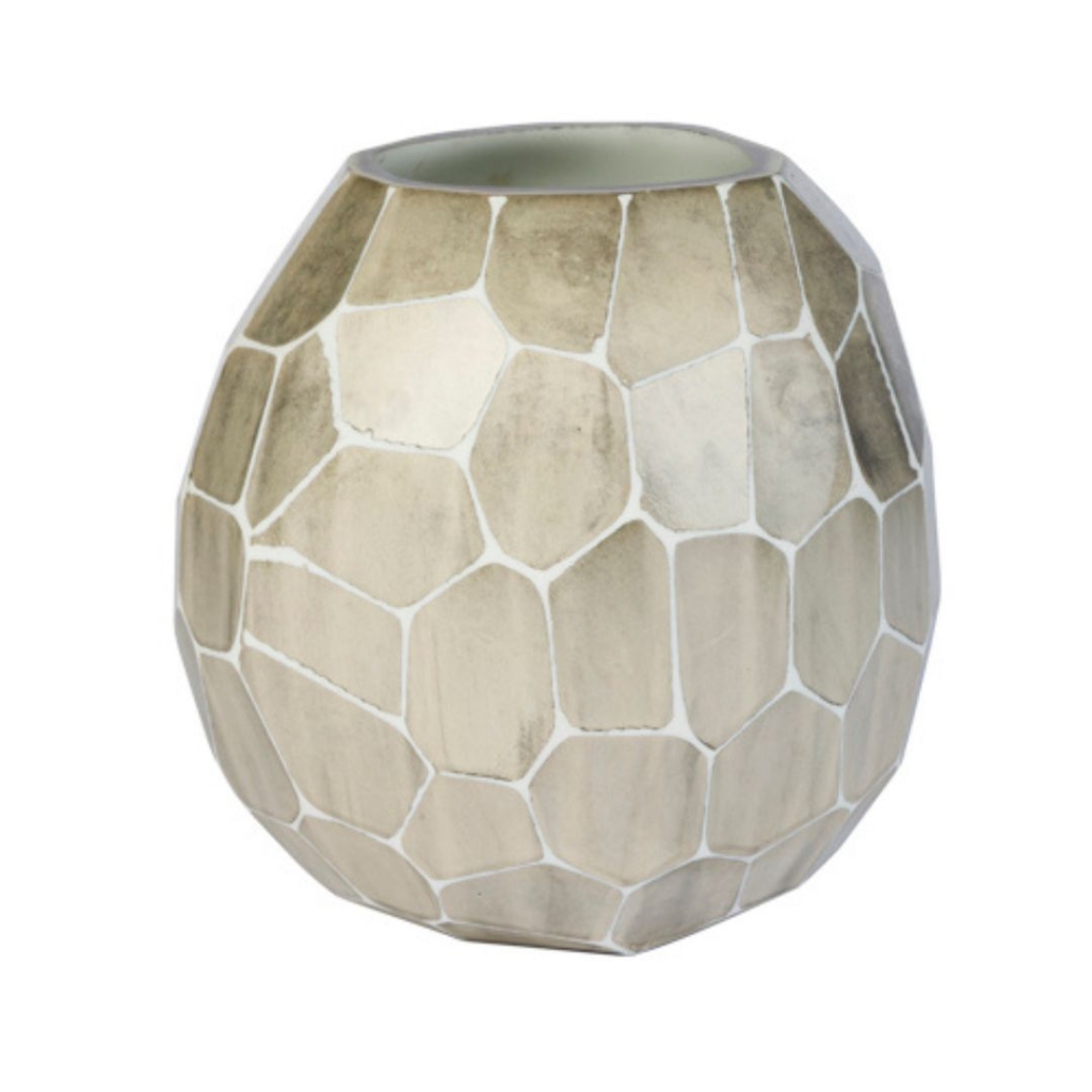Ref: K33A04-007-1242 0Pequeno vaso de vidro oval, escamizado na cor dourada, tamanho 20,5x19cm diam, 20cm alt