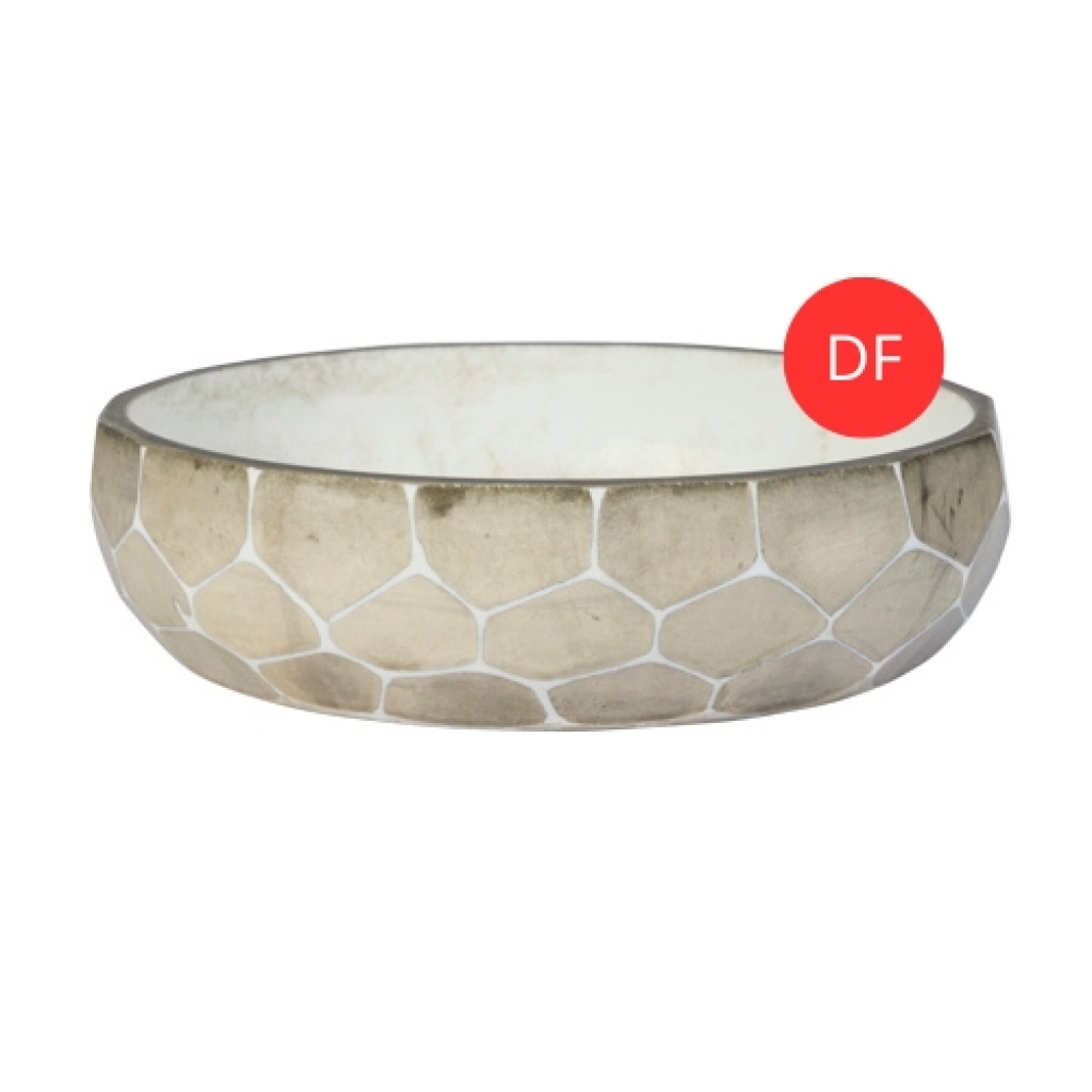 Ref: K33A04-007-6020 0Centro de mesa de vidro, escamizado na cor dourada, tamanho 22cm diam, 7,5cm alt