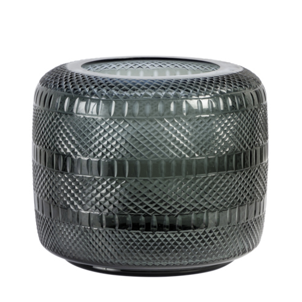Ref: K37A03-003-3011 0Vaso pequeno de vidro trabalhado, medida 27x23cm, na cor azul
