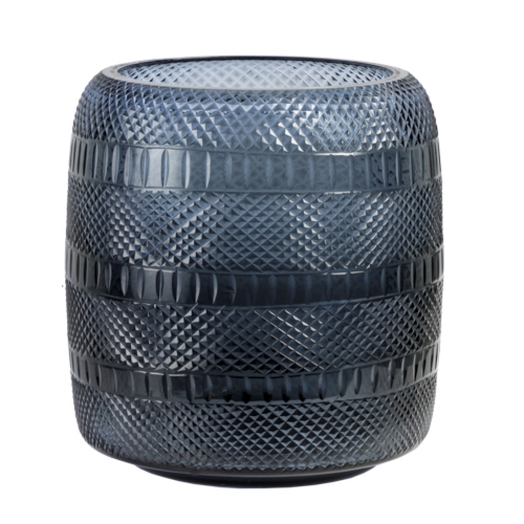 Ref: K37A03-003-3012 0Vaso médio de vidro trabalhado, medida 27x29cm, na cor azul