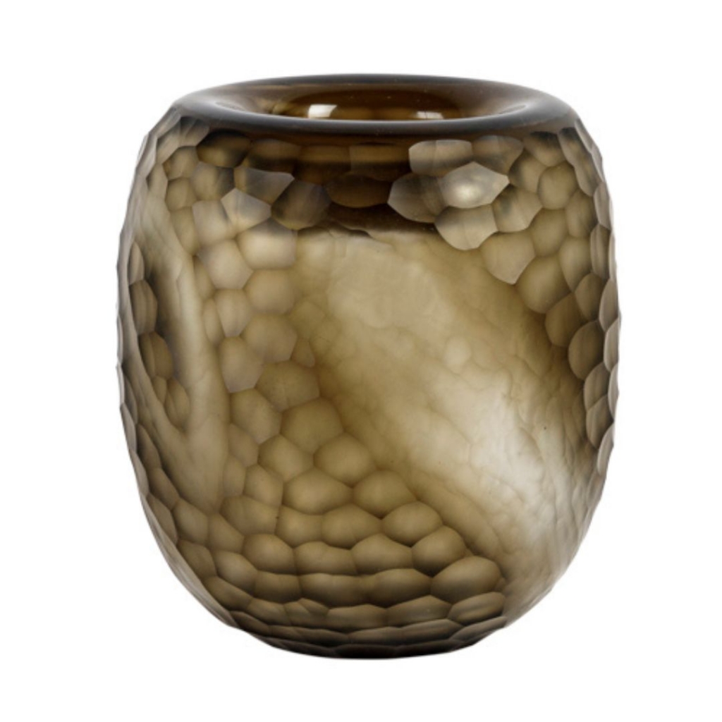 Ref: K38A03-005-1100 0Vaso de vidro pequeno bojudo com detalhes de bolhas, medida 21x21cm, na cor cinza