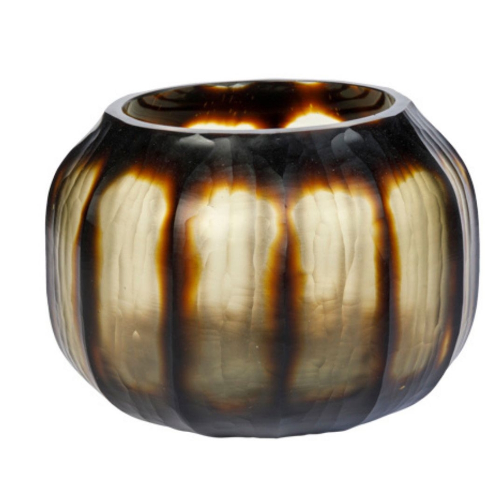 Ref: K38A04-004-3031 0Cachepot de vidro pequeno com listras, confeccionado com a transparencia do vidro em degrade no tom marrom
