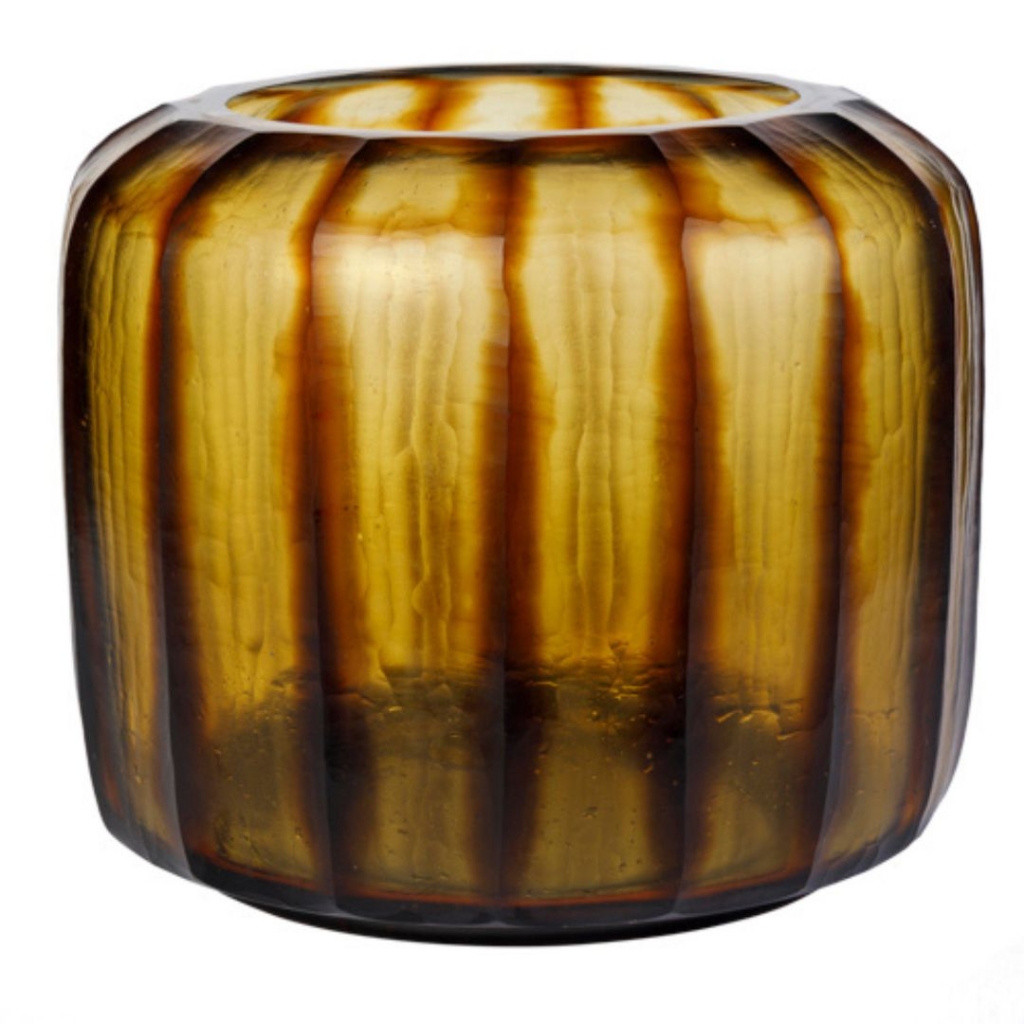 Ref: K38A04-004-3032 0Cachepot de vidro grande com listras, confeccionado com a transparencia do vidro em degrade no tom marrom