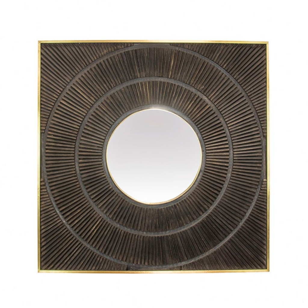 Ref: O40261-4613-200 0Espelho redondo em moldura quadrada em tom cinza.