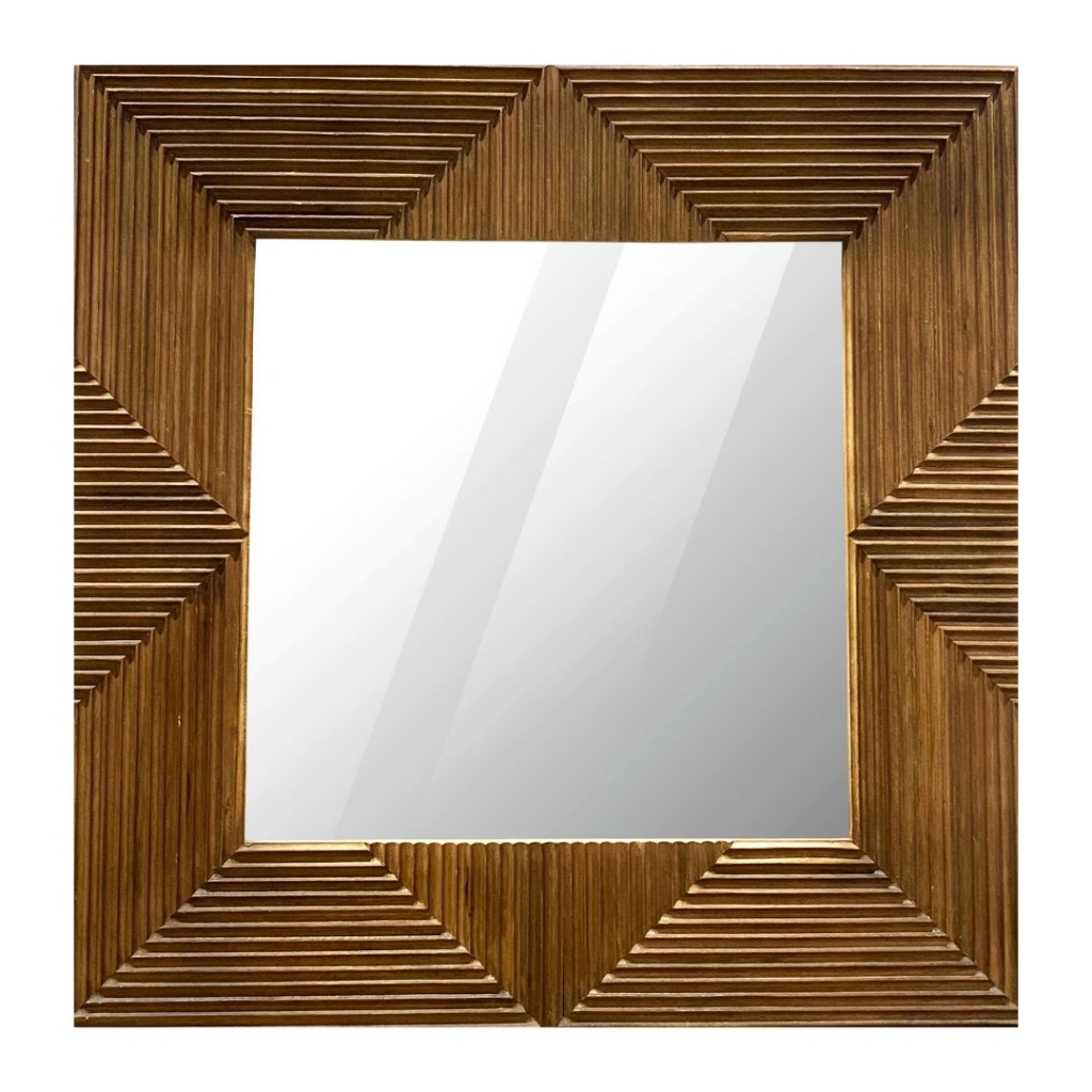 Ref: O40261-4616-800 0Espelho e moldura quadrado em madeira , no tom marrom.