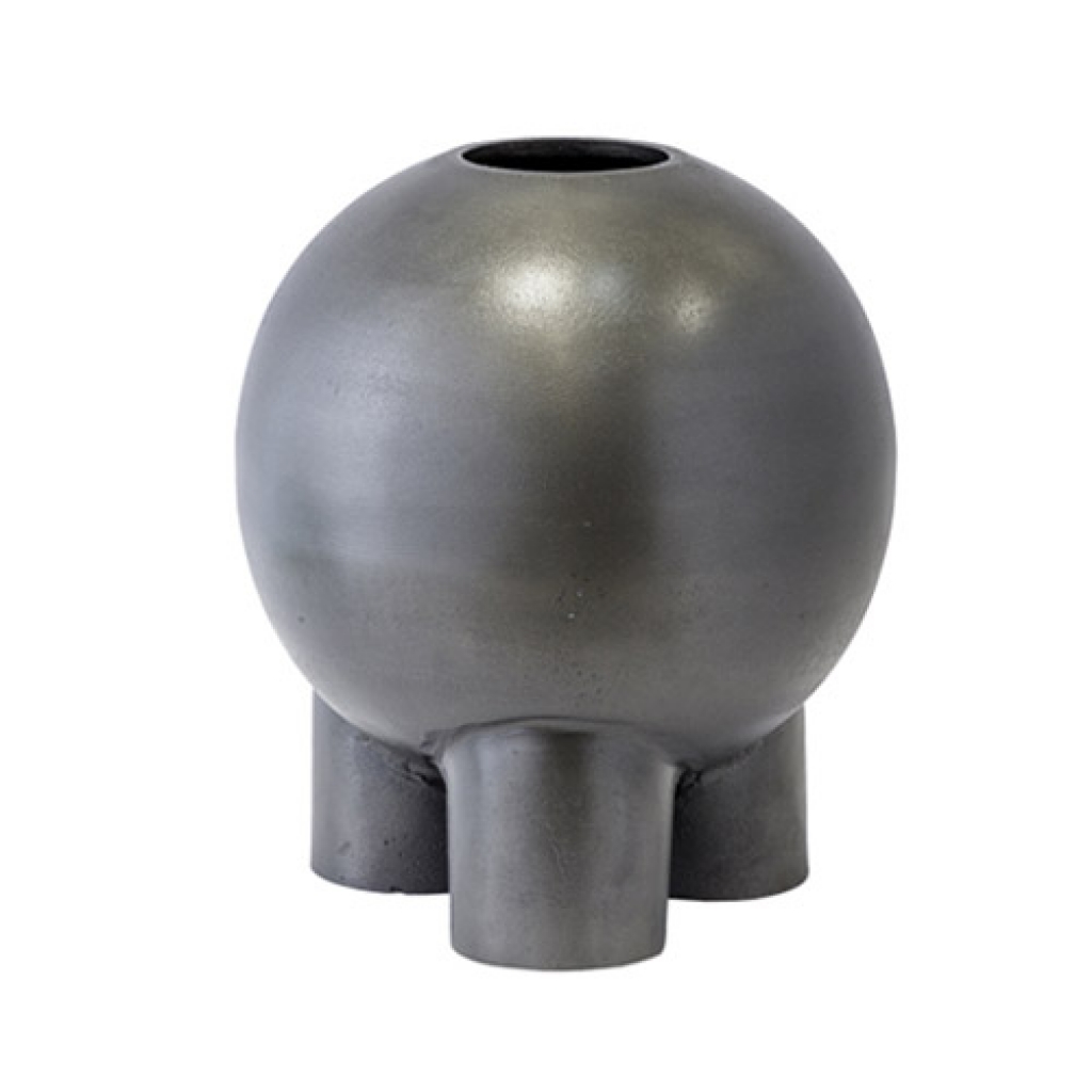 Ref: FM0081-200-1493 0VASO REDONDO DE ALUMINIO, ACABAMENTO CHUMBO ANTIGO COM PEZINHOS