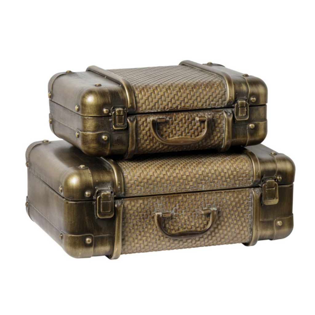 Ref: M12201-0506-389 0Conjunto de 2 Malas de metal trabalhado e com o centro revestidos de Palhinha, com discreta patina e intitulado *Andrew* em homenagem aos exploradores que faziam expedicoes nos desertos.