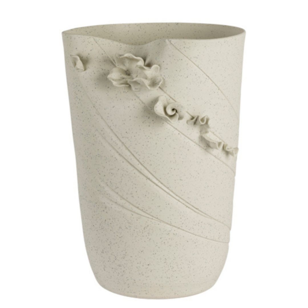 Ref: C50A01-004-1573 0VASO MEDIO DE CERAMICA BRANCO, BORDA LEVEMENTE IRREGULAR E DETALHES AMASSADOS NA LATERAL