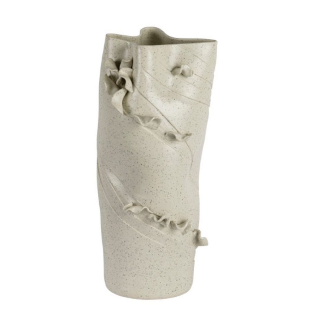 Ref: C50A01-004-1574 0VASO ALTO DE CERAMICA, COM BORDA IRREGULAR E DETALHES EXPIRAL EM SEU CORPO