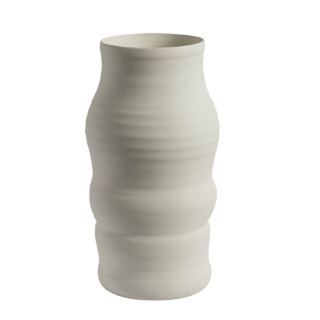 Ref: C50A02-000-1548 0VASO MEDIO DE CERAMICA, BORDA RETA E ONDULADO, BRANCO FOSCO