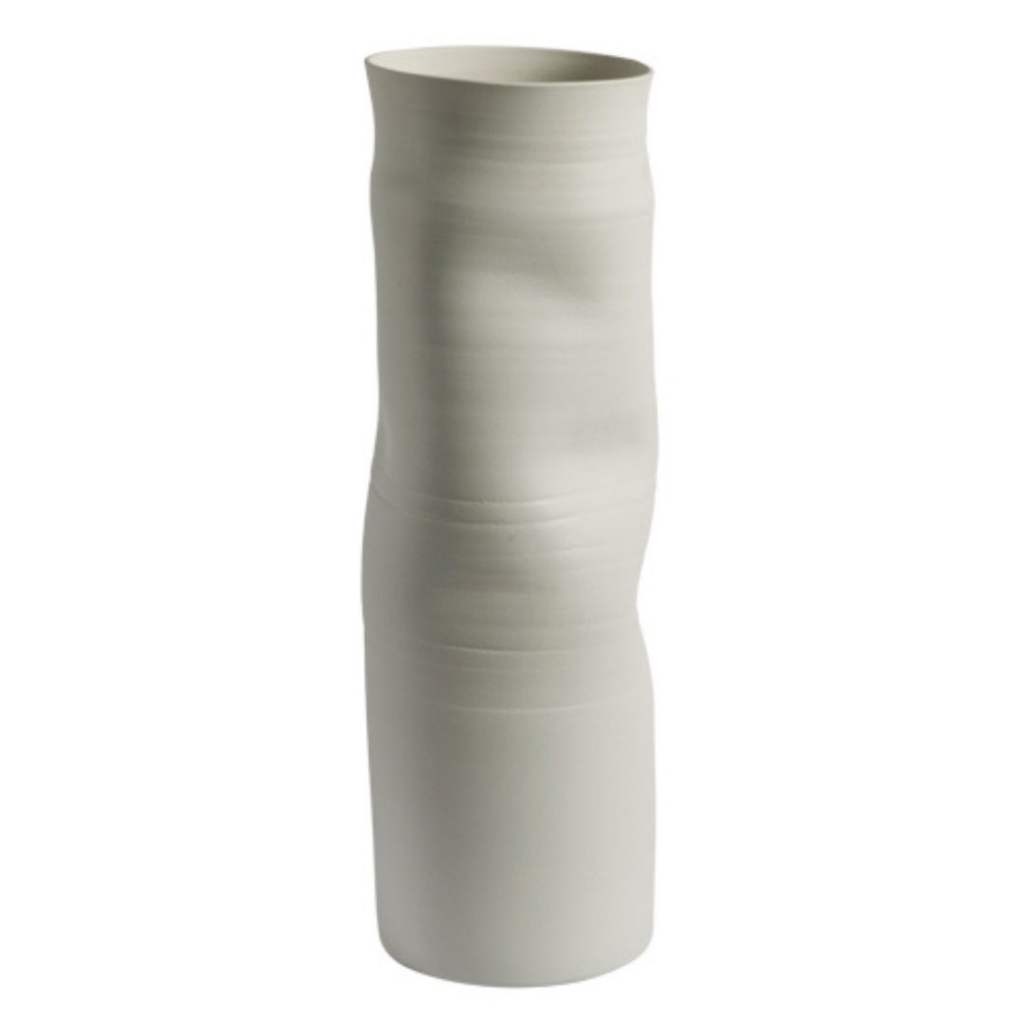 VASO ALTO DE CERAMICA, AMASSADO, BRANCO