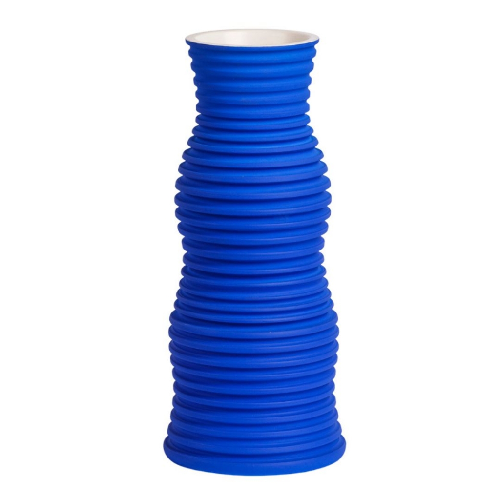 Ref: C57A04-700-1233 0Grande Vaso com formato original e contemporaneo, de ceramica artistica, feita a mao, intitulado *NEO SISSI* na cor Azul intitulado Klein e com o trabalho de ranhuras denominado stripes.