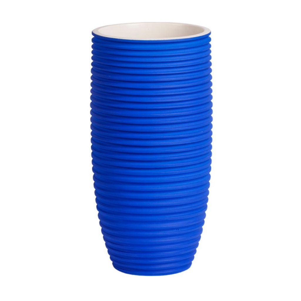 Ref: C57A04-700-1234 0Grande Vaso, de ceramica artistica, feita a mao, intitulado *STRIPES * na cor Azul intitulado Klein e seu interno em branco.