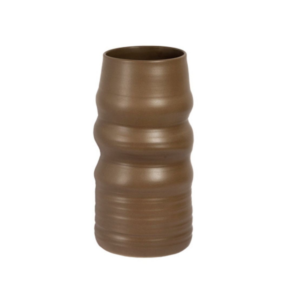 Ref: C58A02-851-1547 0VASO MEDIO DE CERAMICA, COM 3 ONDULACOES NO MEIO, MARROM