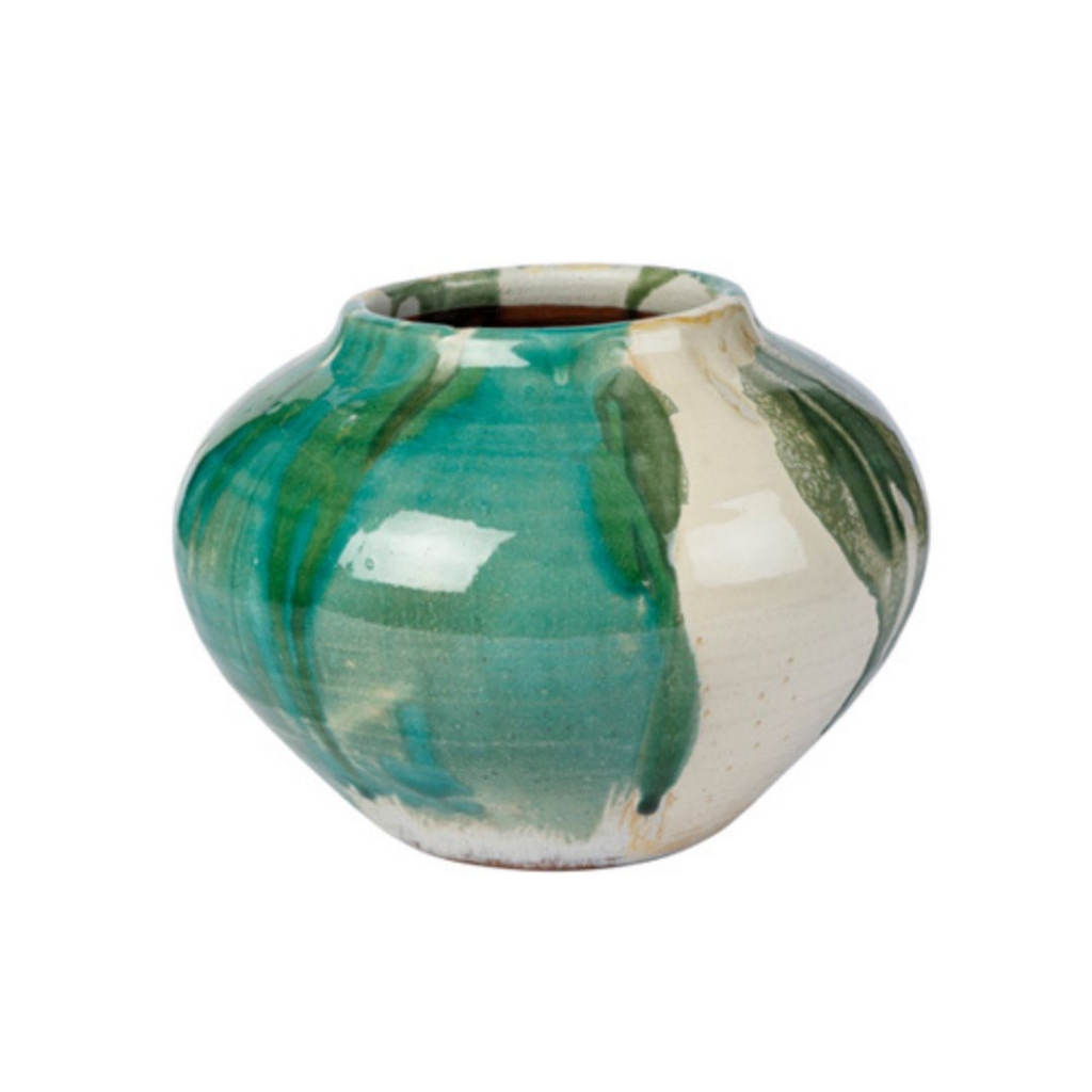 Ref: C70A04-680-1261 0Vaso pequeno de formato bubble, mesclado em verde e bege, bocal largo