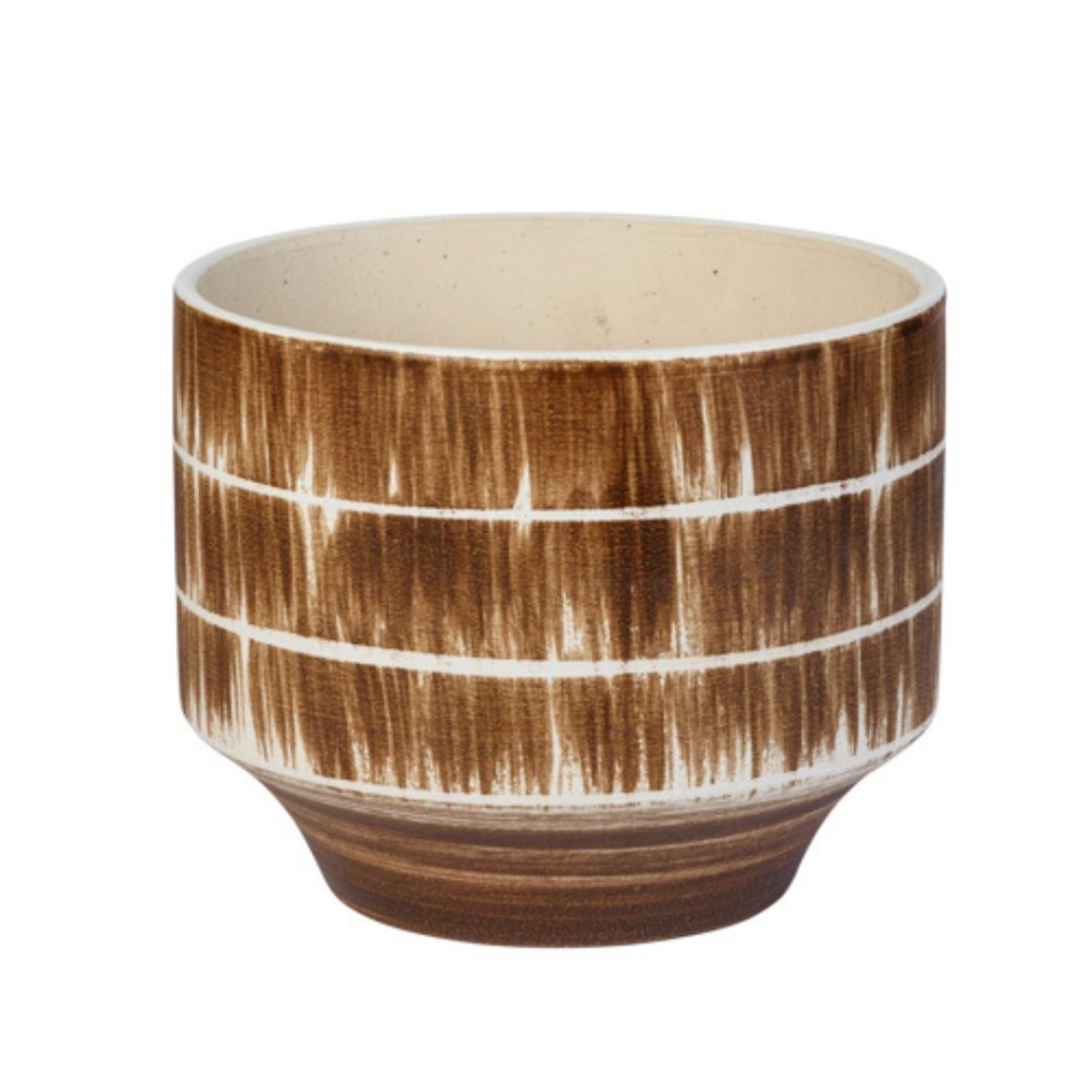 Ref: C70A04-880-1152 0Vaso rustico com aspecto escovado, detalhado em marrom e bege com base