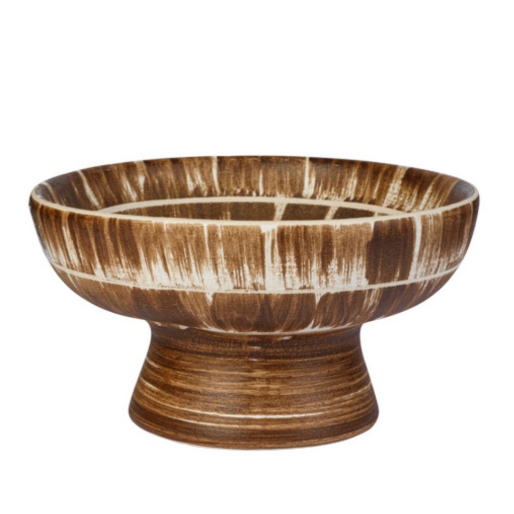 Ref: C70A04-880-3028 0Centro de mesa rustico com aspecto escovado, detalhado em marrom e bege com base base estreita