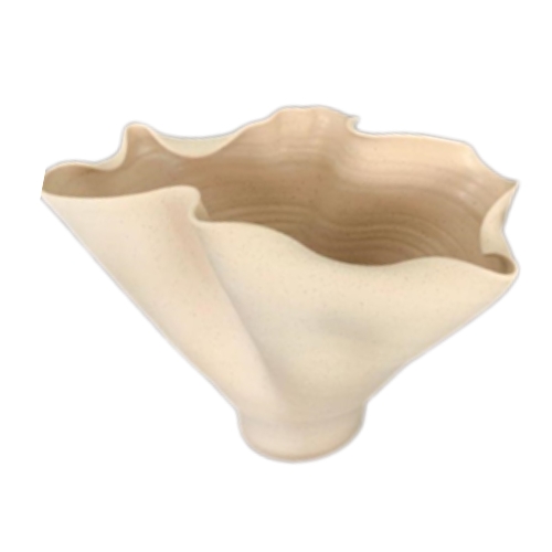 Ref: C48A05-001-1284 0Vaso de ceramica, com formato de bordas onduladas e curvas que lembram ondas das aguas, intitulado *Chang* em homenagem ao rio Changjiang, que é o “Rio Longo”, o maior da China, colecao Essencia do Oriente na cor branca e acabamento fosco.