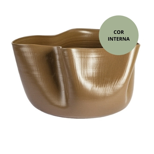 Ref: C46A05-860-1283 0Cachepot de ceramica, com formato de bordas onduladas e curvas que lembram ondas das aguas, intitulado *Chang* em homenagem ao rio Changjiang, que é o “Rio Longo”, o maior da China, colecao Essencia do Oriente na cor marrom rustico e verde brilhoso.