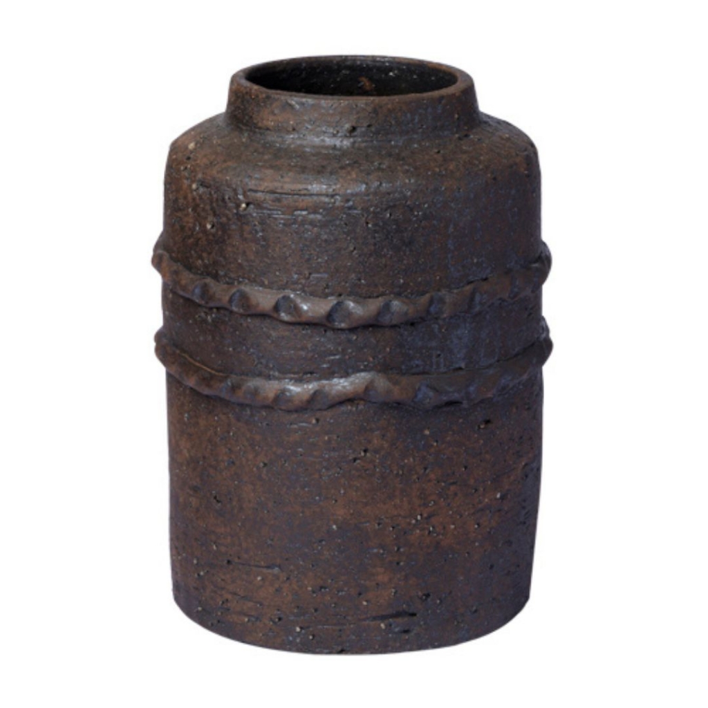 Ref: C10A01-101-1189 0Vaso de Ceramica reto c/corda em seu corpo, rustico preto e cinza, 19x19x28cm