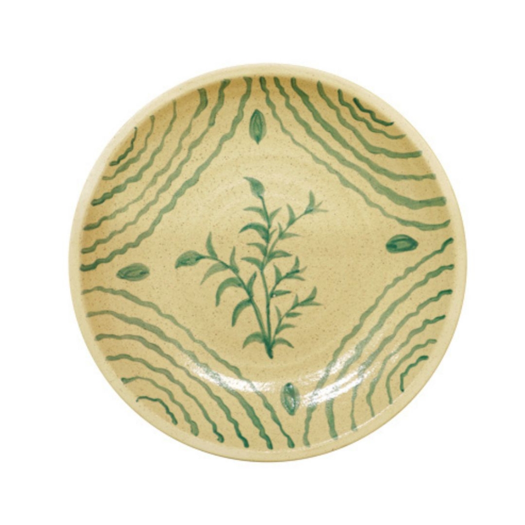 Ref: C10A01-802-4882 0Prato decorativo de Ceramica, na cor bege e detalhes em verde, 41,5x41,5x6cm