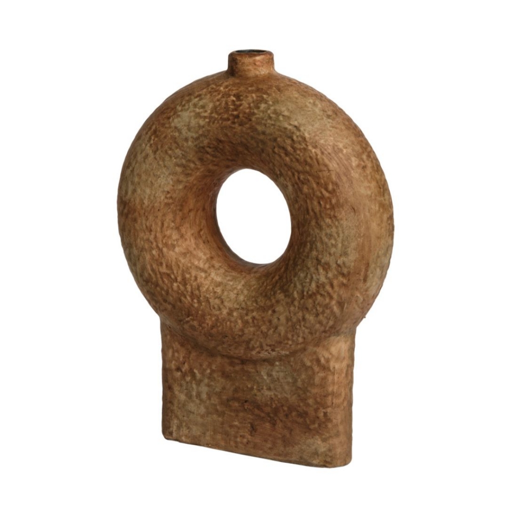 Ref: C10A01-850-1048 0PQ VASO DE CERAMICA C/ BASE RETA E FORMATO CIRCULAR, MARROM
