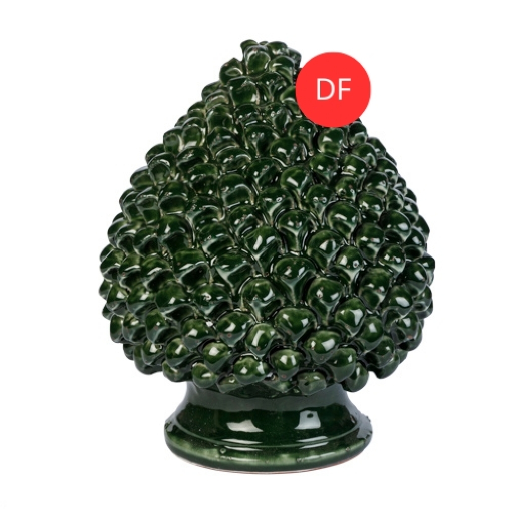 Ref: C10A04-600-8001 0Escultura de ceramica pequena remetendo a pinha, em pintura com tom verde musgo