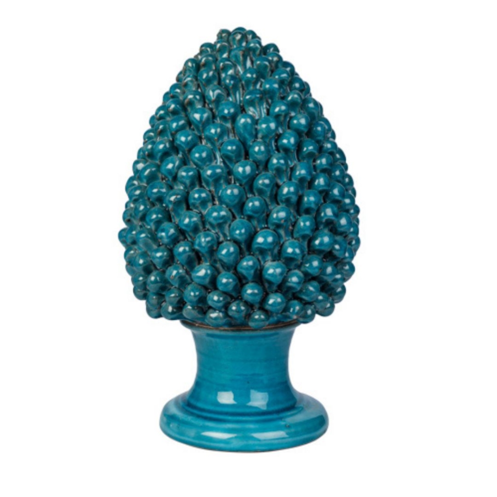 Ref: C10A04-660-8002 0Escultura de ceramica media, remetendo a pinha, em pintura com tom azul turquesa