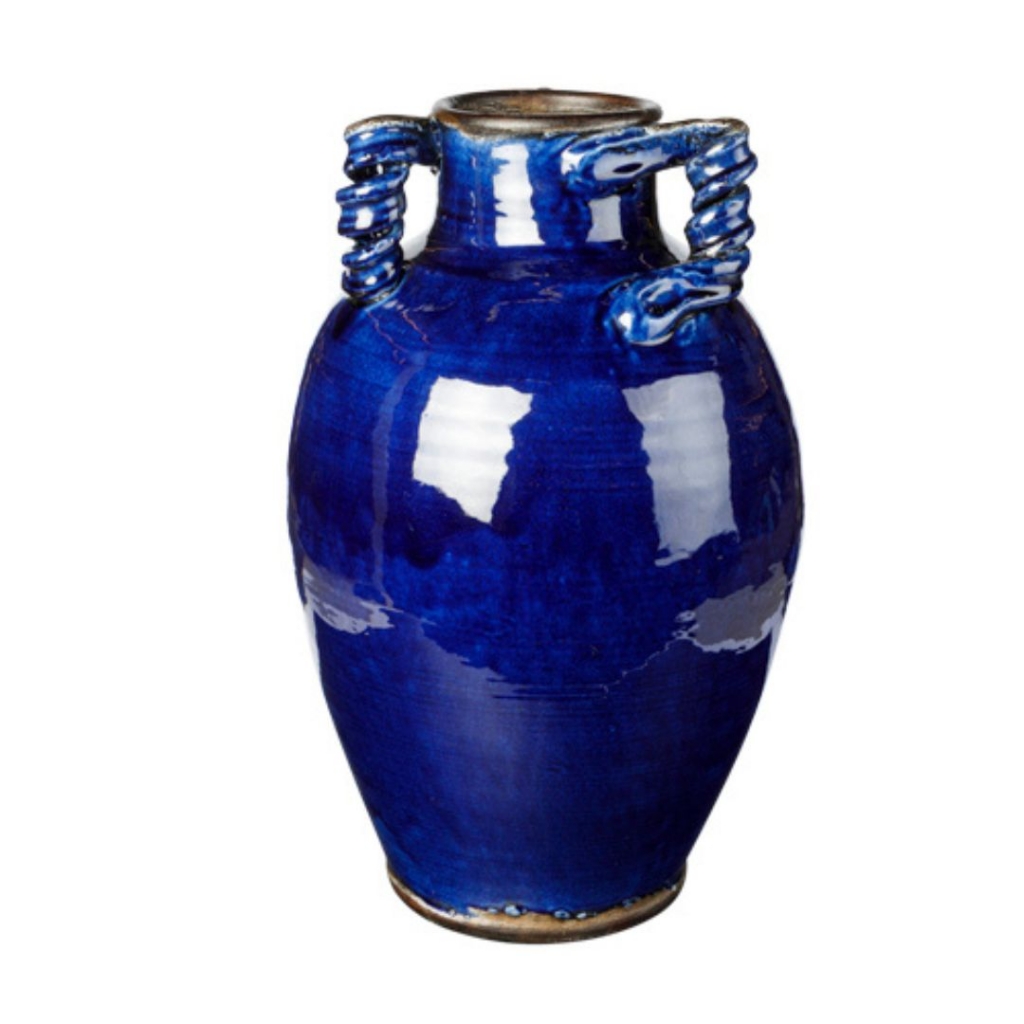 Ref: C10A04-700-1257 0Vaso no formato de jarro, com alcas torcidas na cor azul marinho esmaltado