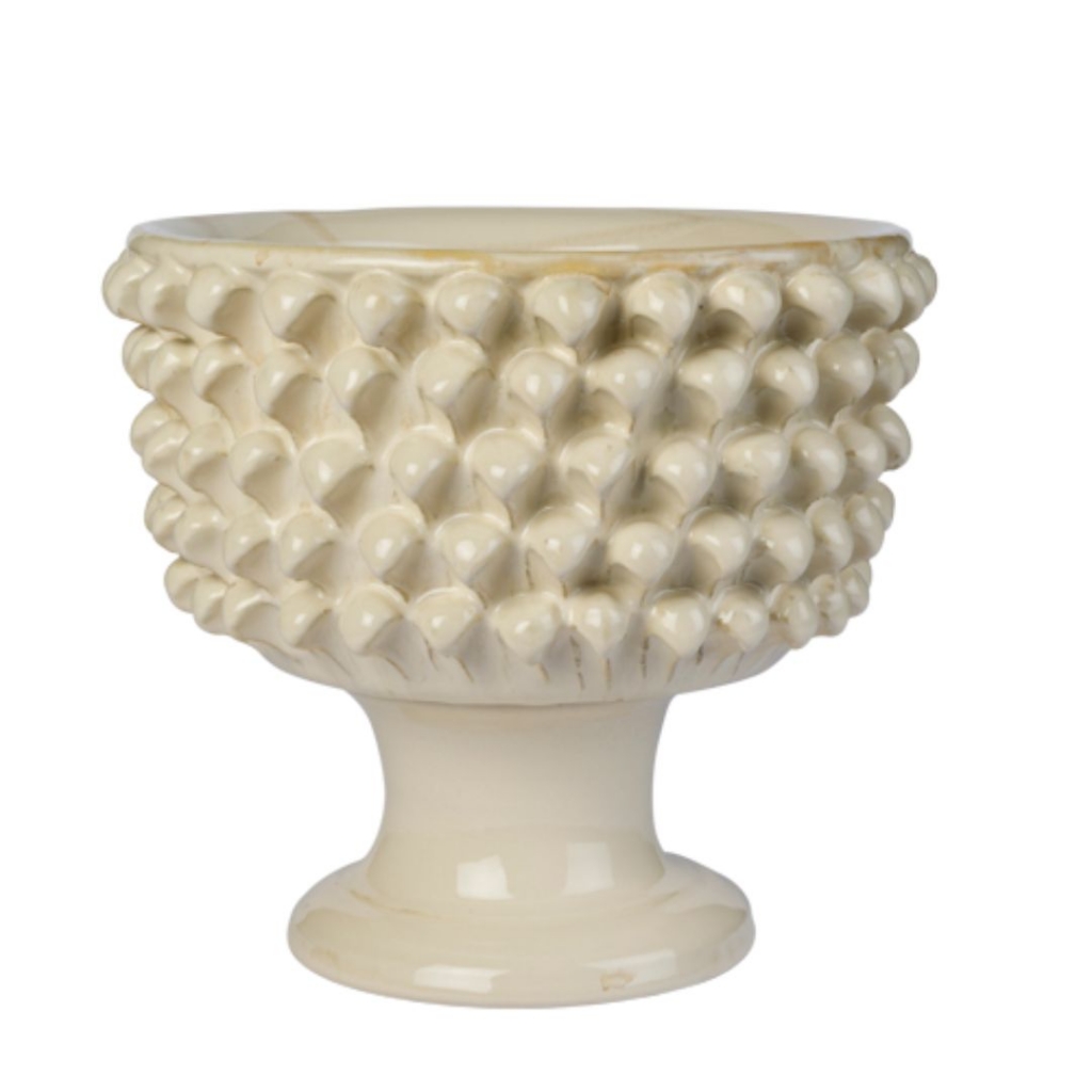 Ref: C10A04-800-6021 0Centro de mesa pequeno, com relevo espinhoso e base estreita na cor bege