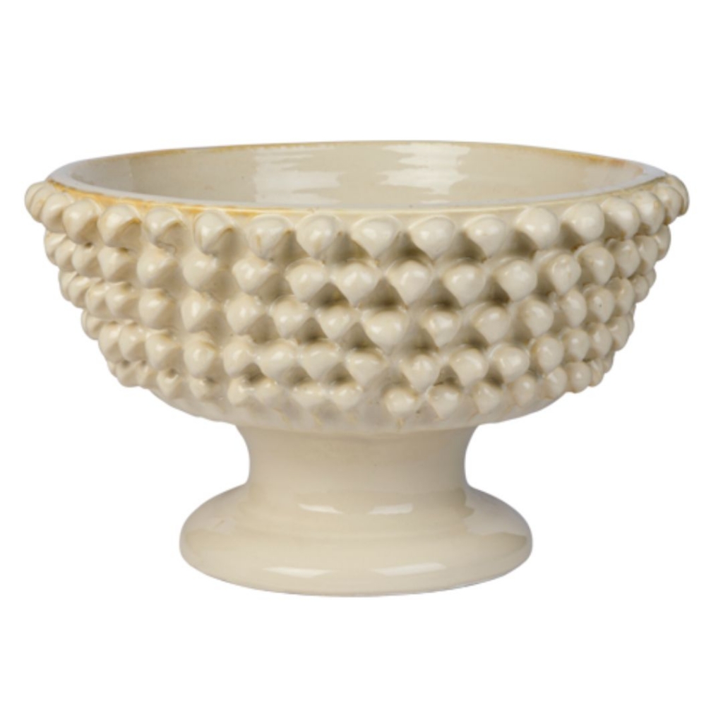 Ref: C10A04-800-6023 0Centro de mesa grande, com relevo espinhoso e base estreita na cor bege esmaltado