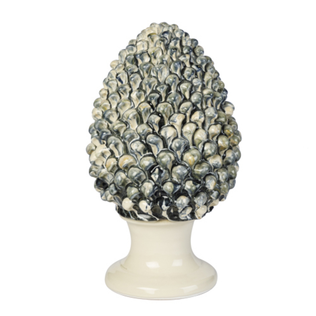 Ref: C10A04-876-8002 0Escultura de ceramica media, remetendo a pinha, em pintura marmorizada na cor marrom, azul e bege