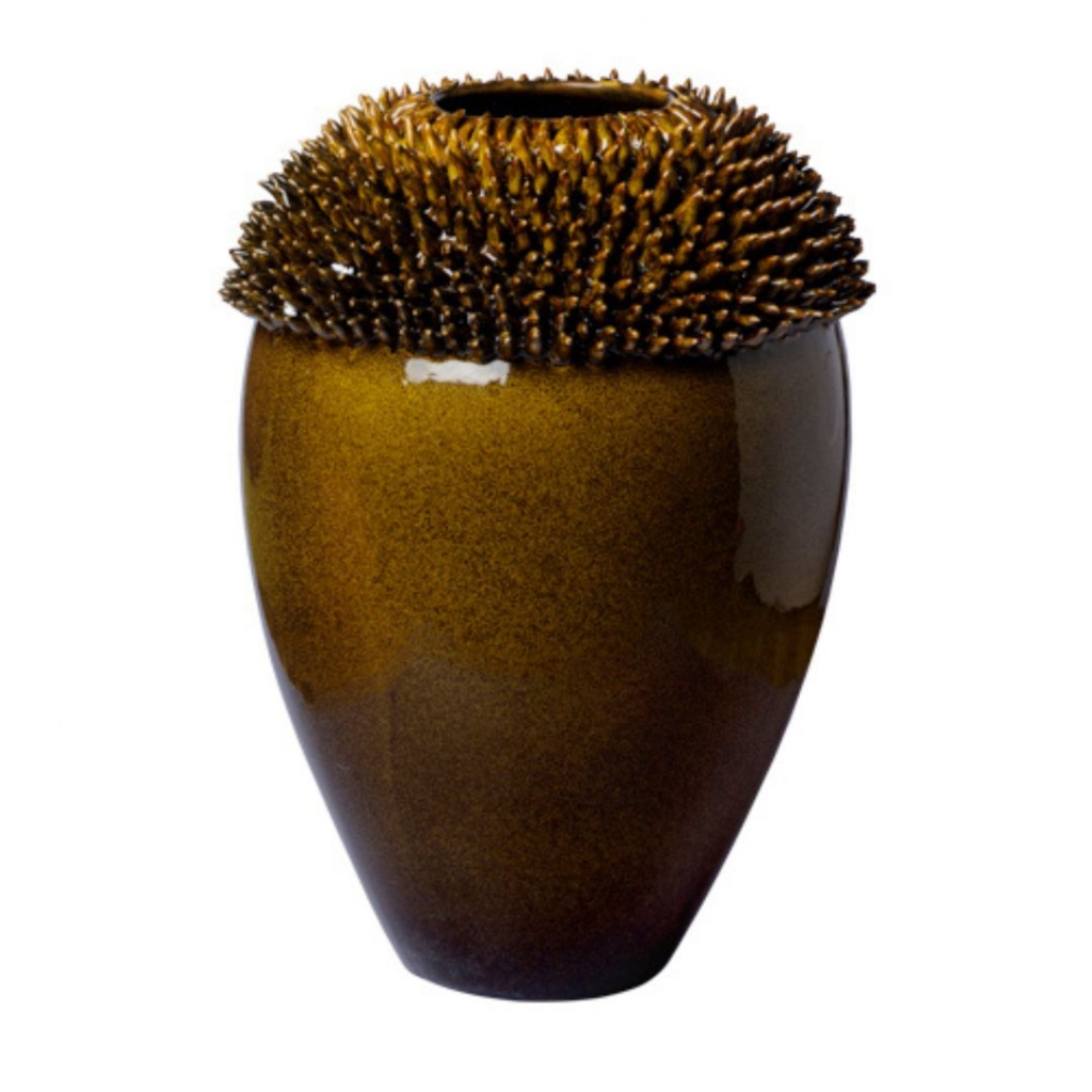 Ref: C30A05-880-1163 0Vaso de Ceramica com base estreita e borda espinho, na cor marrom claro