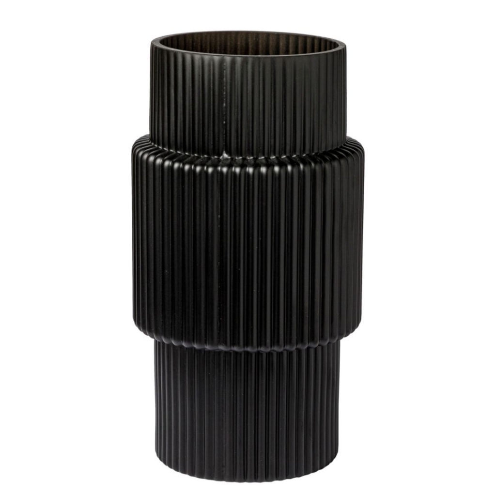 Ref: K11A01-190-1014 VasoVASO DE VIDRO PRETO C/BASE E BORDAS ESTREITAS ESTRIADO