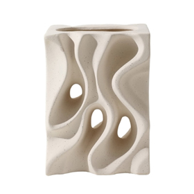 Cód. C10A04-580-1121 Vaso alto de textura ondulada e efeito espatulado, fosco na cor bege... 16x16x18cm alt +Veja mais detalhes