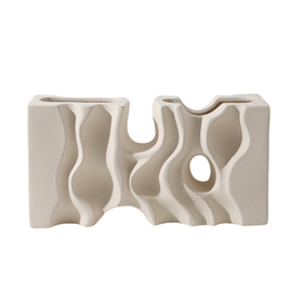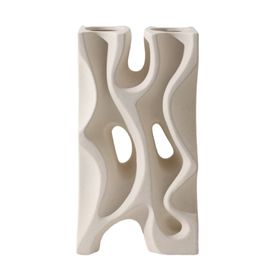 Cód. C20A06-001-1014 Vaso duplo 5 de ceramica feito a mao, em tom creme areia, da colecao intitulada ... 43X14X23cm.alt. +Veja mais detalhes