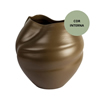 Cód. C48A05-001-1290 Vaso de ceramica, com formato arredondado e detalhe sobreposto como se fosse fol... 35X21X26cm.alt. +Veja mais detalhes